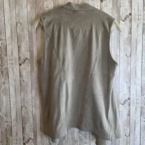Stylish sleeveless vest. Draped open front. Soft fabric.