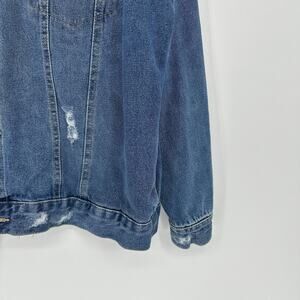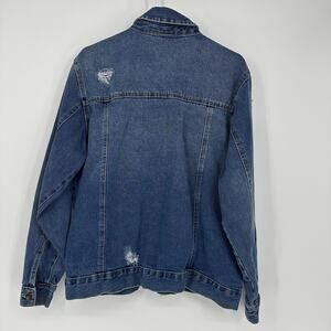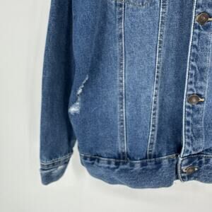 Roebuck & Co Jacket Mens XL Blue Distressed Denim Button Up Jean Trucker
