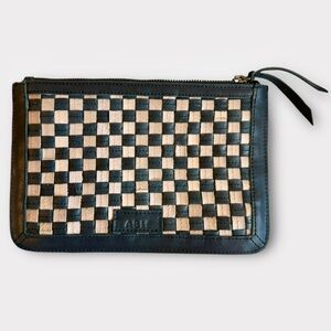 New without tag. Able Nesmia Basketweave Leather Clutch in Black and Tan. This basketweave clutch is the perfect accessory for the woman on-the go. With a slim profile that’s sized and organized for the day's essentials, pair this pouch with any of our totes to add extra versatility and organization to your everyday life. The basketweave clutch is polished, practical, and petite. Measurements: 6” H x 9.5” W. Zipper closure. 1 interior zipper pocket. Lining with cotton twill lining. Subtle variations add to the uniqueness of this item. Handcrafted. Selling on the Nordstrom website now for $108. Excellent clean new without tag never used condition.