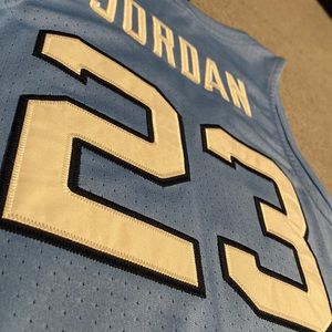 THE UNC jersey of the greatest to ever play basketball, #23 Michael Jordan! RARE item to find in this condition! Adult size medium (44) and made with authentic Jordan brand Swingman material! Please keep in mind the rarity of this jersey when you make an offer as no lowballs will be considered.