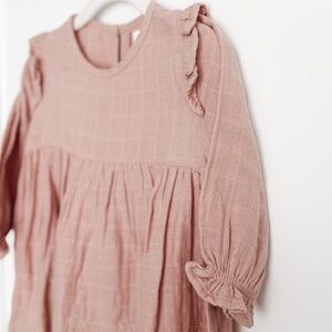 With its ruffle shoulders, balloon sleeves, and flowing A-line silhouette, the Frankie Dress is ideal for special occasions (family photos!) or everyday play. Lightweight and breathable, it’s perfect for summer days or layered with knitwear during cooler months.