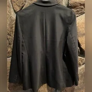 This chic black blazer from Chico's features a classic tailored fit with structured shoulders and notched lapels, offering a sleek and professional look. Its minimalist design and formal suiting material make it an ideal choice for business and formal occasions.