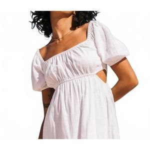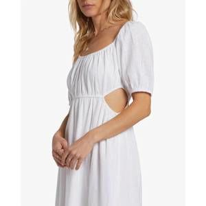 Slip into the ethereal On The Coast Maxi Dress by Billabong, featured in the Return To Paradise collection. Designed with short puff sleeves and a scoop neckline, this salt crystal-hued piece is crafted from 100% cotton slub fabric, offering a breathable fit perfect for summer days. The fitted bodice and easy A-line skirt silhouette include a striking cut-out detail at the waistline, adding a touch of minimalist charm to your vacation wardrobe. Closure: Pull-on. Care: Machine wash.