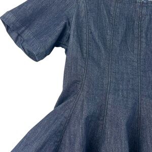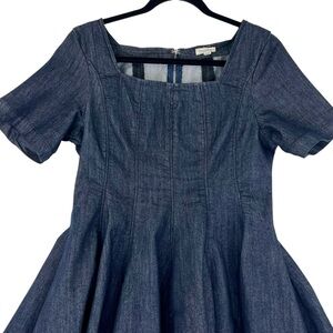 Anthropologie Pilcro Short-Sleeve Square-Neck Denim Mini Dress Sz L Blue Flare