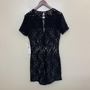 1. State Short Sleeve Lace Romper Size 6 Black Scoop Neck