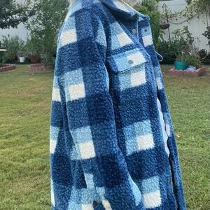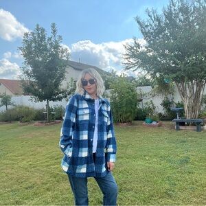 Soft surroundings blue plaid dealto shacket with pockets size medium