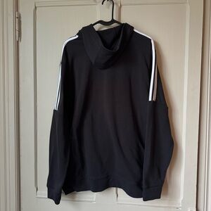 Adidas hoodie with a zip closure. Features the classic three white lines down both arms!