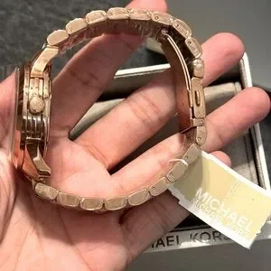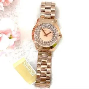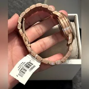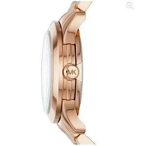 Elevate your style with this stunning Michael Kors Runway Baguette Crystals Rose Gold Watch. The 40mm stainless steel case features a beautiful rose gold bezel and a solid case back. The fixed bezel is adorned with crystals that add a touch of luxury to this watch. The deployant closure allows for easy wearing and the bracelet band is comfortable on the wrist. The watch has a quartz movement, a mineral crystal, and is water-resistant up to 50m. This watch is perfect for any occasion, whether it’s a holiday celebration or a casual outing. Sparkling baguette stones renew this Runway watch with understated opulence. Crafted from rose gold-tone stainless steel, it’s an elevated choice for day-to-evening wear.