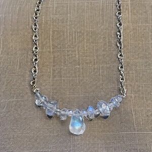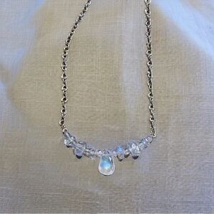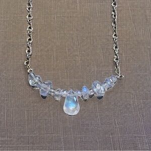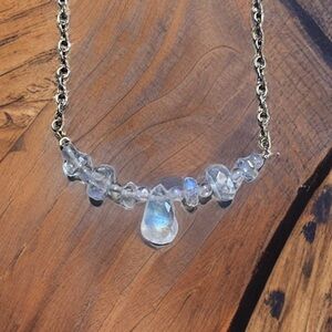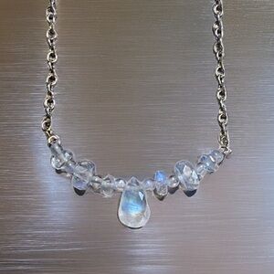 Genuine Rainbow Moonstone Necklace! 925 stamped silver rolo chain.