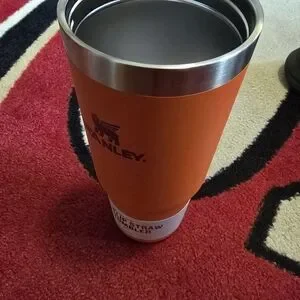 Stanley Vibrant Orange Mug with Purple Lid 'Brand New' NWOT