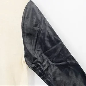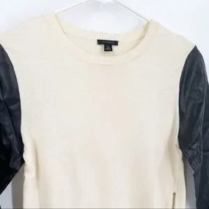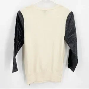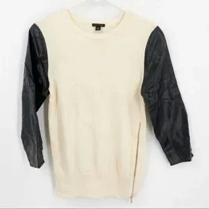 Ann Taylor XS Cream Sweater with Black Faux Leather Sleeves Zipper Accent