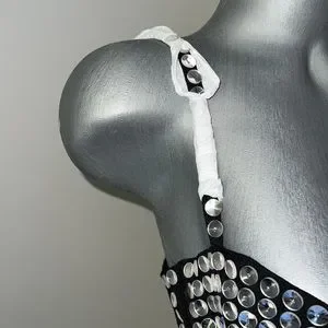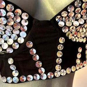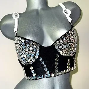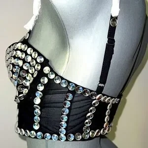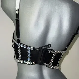 Black bralette with sparkling rhinestone embellishments. Adjustable straps and band.