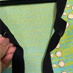 This Misook cardigan sweater showcases a vibrant blend of green and blue hues, perfect for adding a pop of color to your wardrobe. The three-quarter length sleeves and elegant striped pattern offer a sophisticated yet casual look. Ideal for both casual outings and dressier occasions, this sweater combines comfort with a touch of embellishment. No size tag but it looks like a M/L #2