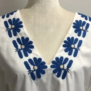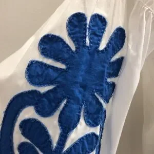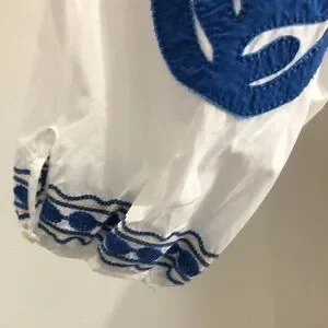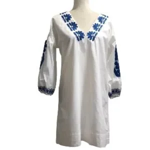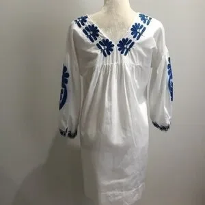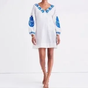 Madewell Blanca embroidered white dress blue stitching XS EUC