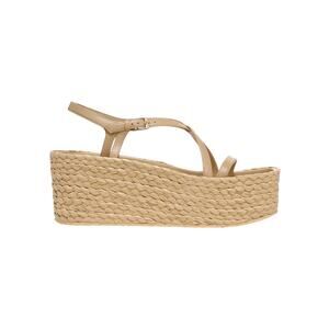 Vince 'Maxine' Beige Leather Platorm Strap Sandal Size 6.5: leather sheepskin, inset footbed, braided straw platform, buckle ankle strap, rubber sole, espadrille wedge heel.