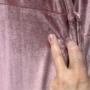 Beautiful Baltic Born velvet wrap dress in a rose pink. This was originally purchased as a bridesmaid dress, then worn a handful of times to wedding and on dates. Stretch velvet is beautiful and soft. The last few pictures show wear on the string where it was tied. One small water spot on the front very close to the tie string and a few spots on the inside lining. Perfect for elegant events.