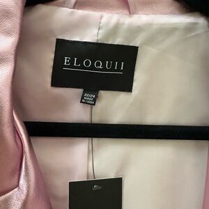 Shimmering pink pleather moto jacket by Eloquii. New with tags! Plus size 22/24 Features a sleek design with zippered pockets and stylish lapels. Perfect for a bold fashion statement.