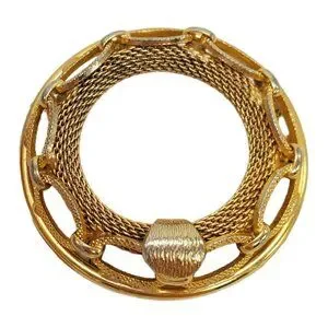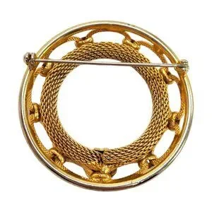 Vtg Round Mesh Chain Brooch Pin Gold Tone Nautical Circle Wreath Statement 2-1/8