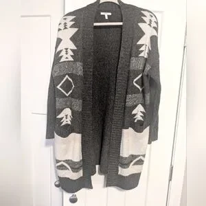 Maurices Gray Aztec Open Front Cardigan Sweater Pockets Women’s L Large
