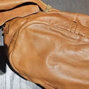 Elegant caramel leather hobo bag. Ideal for daily use. bought second hand and used oned. chain strap.