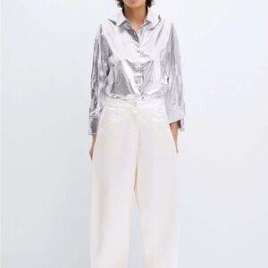Satin Curved Pants in White designed by CORDERA. Their iconic curved shape with new fabric. Designed with elastic waist back, high rise and curved leg, finished with side and back pockets and zip fastening with button closure. The satin, makes this garment unique and combines perfectly with any shirt.
