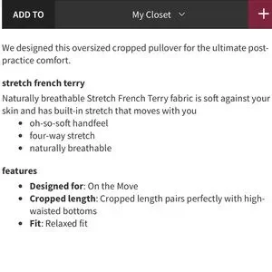 ✨Lululemon All Yours Cropped Hoodie is color Soleil. Great condition, cannot find any rips or stains. It is a stretch French terry material. Super comfortable and stretchy!