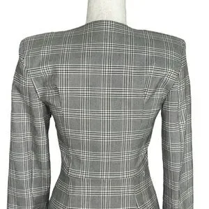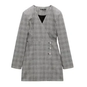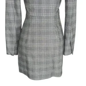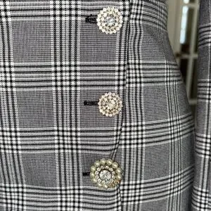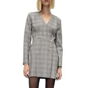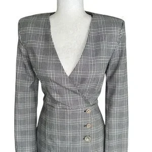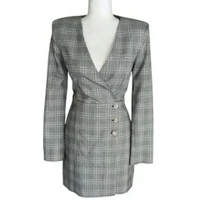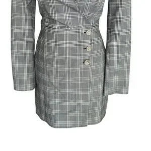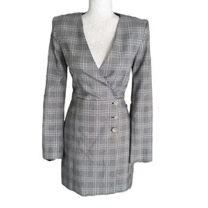 Zara Black & White Plaid Wrap Front Rhinestone Button Blazer Mini Dress - XS