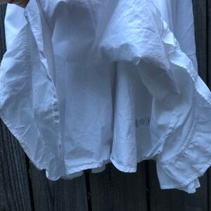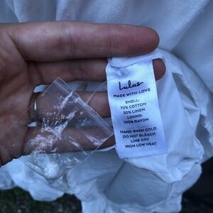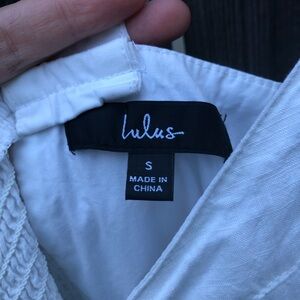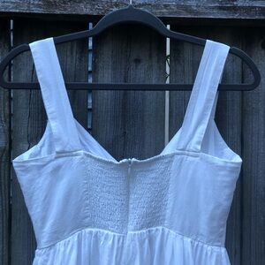 Lulus Good To Be Here Mini Dress in white. Sleeveless tiered babydoll dress in a beautiful cotton/linen blend with rayon lining. Corset-looking bodice with non-functional buttons. Back zip. Smocked panel in the back for the perfect fit. Very short, so please check measurements. Gorgeous little dress in perfect condition, like new (still has the extra button attached to the tag, so I don’t think this has ever been worn). Size S.