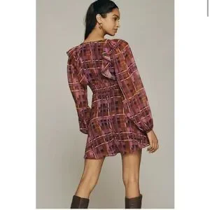 Anthropologie hutch flowy romper size S v neck purple geometric - new with tags. Technically a romper but wears like a dress