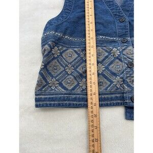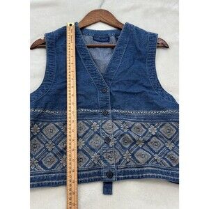 Vintage Karen Scott Vest Large Denim Floral Boho Festival Cowgirl Y2K Western
