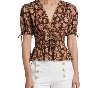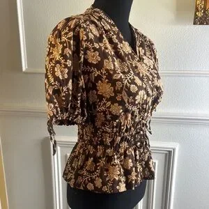 Chic floral top with puff sleeves and a smocked waist. Perfect for a stylish look. In excellent condition.