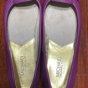 Super cute Michael Kors flats in plum purple. These are is good shape but they do have two spots on each back of the bottom that I have pictured. Other than that they are in great shape.