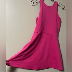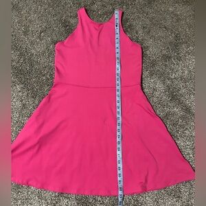 Athleta conscious racerback flare dress. Dark pink or fuchsia color. Size medium. Has two side pockets that are good sized and the top portion of the dress is double lined! In excellent pre-owned condition!