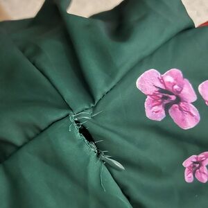 Stunning floral print dress by LATISTE by AMI, size 3X. Features a dark green background with colorful floral pattern. Designed with metallic circle details along the shoulders and waist for an elegant touch.