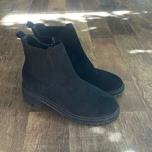 Unilady Black Suede Ankle Combat Boot Booties size 7