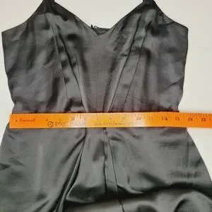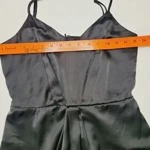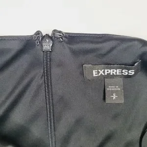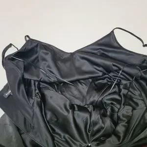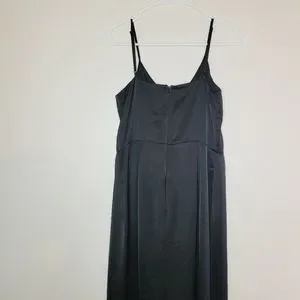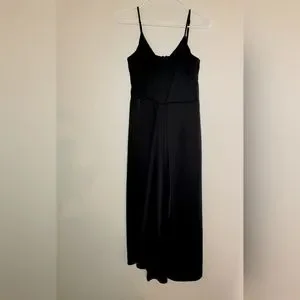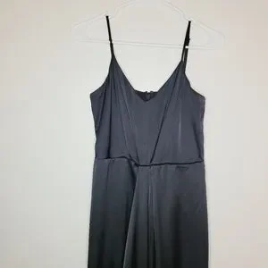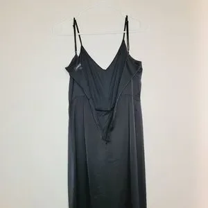 EXPRESS Slip Dress Womens Black Small Satin V-Neck Asymmetrical Midi Coctail