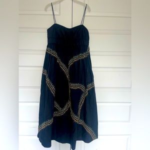 Ulla Johnson Black Midi Dress with Gold Accents