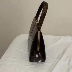 Elegant Brown Crocodile Pattern Handbag