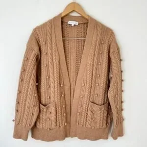White + Warren Camel Brown Wool Blend Chunky Knit Cardigan Sweater Womens L