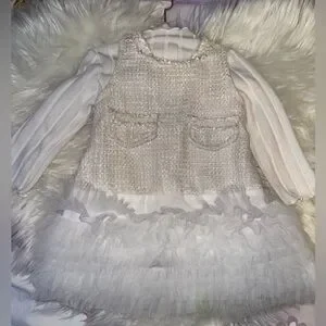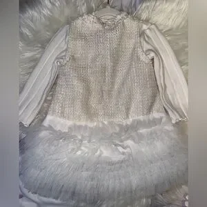 This elegant white kids dress is perfect for special occasions. Its delicate design and soft fabric ensure comfort and style. Worn once.