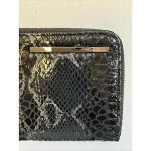 Kenneth Cole NewYork Embossed Snake Print Black Leather Wallet/Clutch/Zip Around