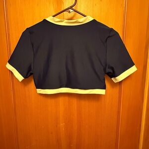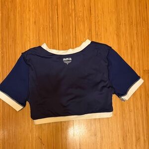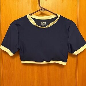 The one to turn heads. The Richie two-piece features a ringer-style t-shirt top, providing support for those active beach days. The Navy blue and white colour contrast frames the body perfectly.