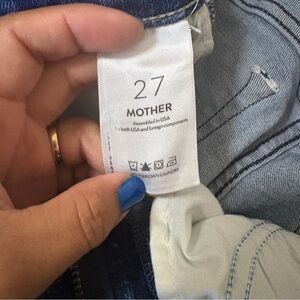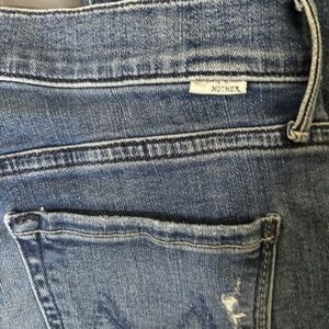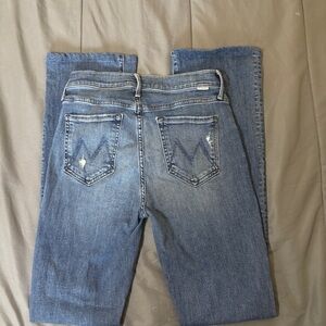 Chic boot cut jeans with a distressed look. Perfect for casual outings. High-quality denim by MOTHER.