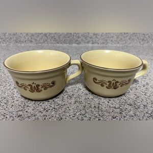Pfaltzgraff Village Pattern Vintage Cream and Brown Teacup Set