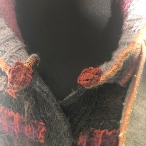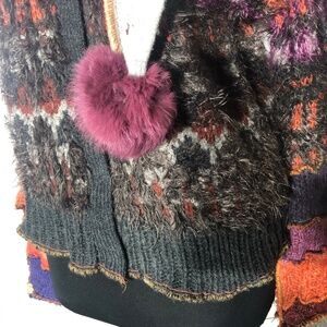 Handcrafted Patch Knitted Sweater Upcycled Fairy Elf Pointy Hood Multicolor sz M