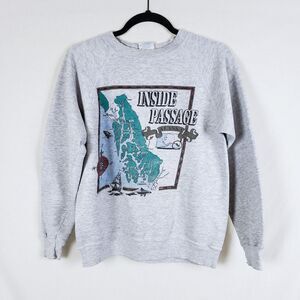 Vintage Alaska Sweatershirt Hanes Mens M Gray Inside Passage Map Tourist Raglan