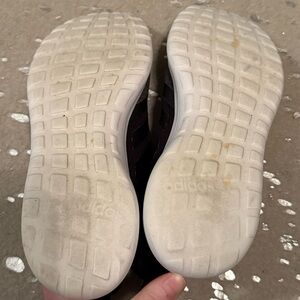 Cute and comfy black, gray and white Adidas Cloudfoam style slip on laceless sneakers with Ortholite Float insoles.