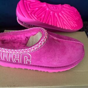 Vibrant fuchsia suede slippers by UGG. Soft interior with sturdy sole.
