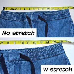 Features: Elastic drawstring waistband, zip fly, cuffed hem, two back button pockets.