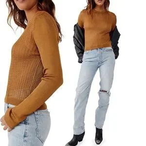 NWT Free People Crewneck Sweater in Tiger Eye